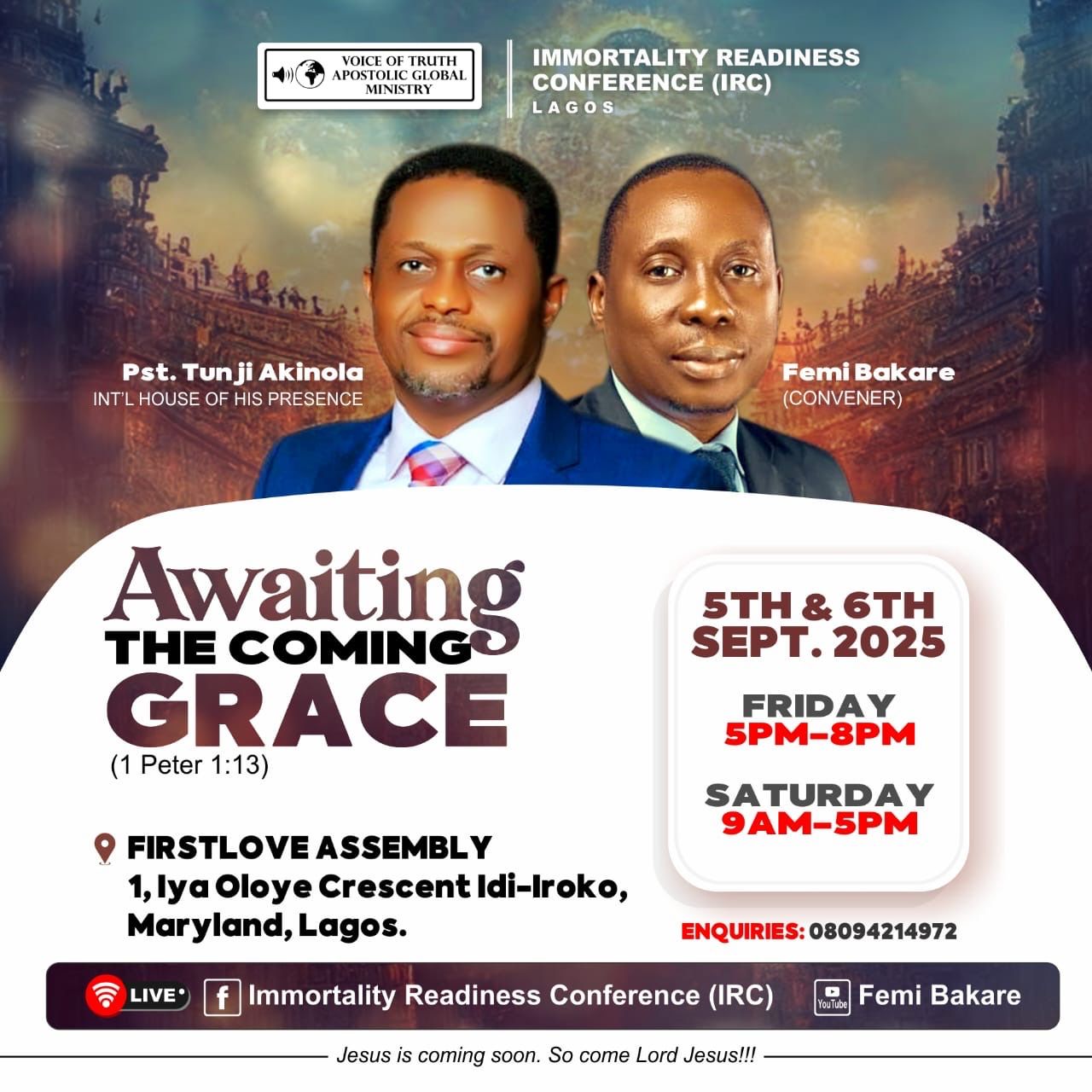 We have the audio messages of the just concluded IRC Lagos edition, you can get them below or go to the sermons page and check out all our audio messages of past Immortality Readiness Conferences.